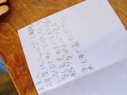 リハーサルを終えた後、おうちの人に向けて招待状を作りました。「ぼくは大きな声で言うのをがんばるよ」「手話ソングをがんばるよ」と自分の頑張りたいことを書き、「見に来てね!」「楽しみにしていてね」と言葉を添えていました。
