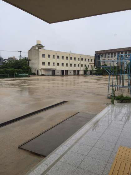 雨がザーザーと降っています。