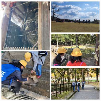 オリエンテーリングがはじまりました。5・6年生の合同班で、二月堂や南大門などをまわっています。