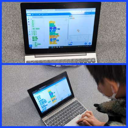 ICT支援員の方に教えてもらいながら、スクラッチというアプリを使い、正多角形をかくプログラムについて学習しました。辺の数や角度を考え、試行錯誤しながら、プログラミングにチャレンジできました。