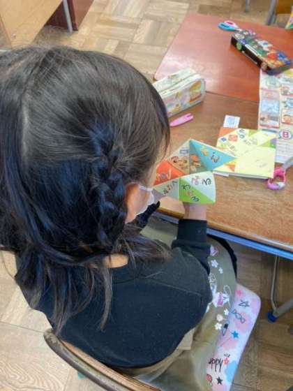 今日は、「おおさかふれあいすごろく」に取り組みました。すごろくをしながら、ユニバーサルデザインについて学んだり、点字ブロックの表す意味について知ったりすることができました。大人も、子どもも、しょうがいのある人も、ない人も、みんなが使いやすい形を考え出すユニバーサルデザインが広がり、みんなが幸せに過ごせる社会になってほしいと思います。