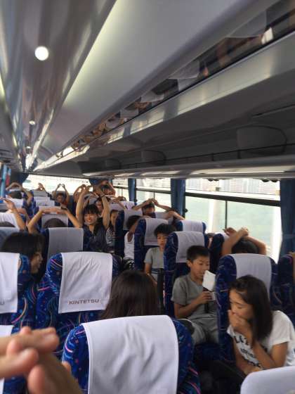 バスの中では、歌をうたったり、クイズをしたりして盛り上がりました。