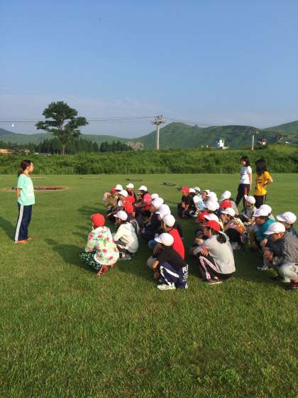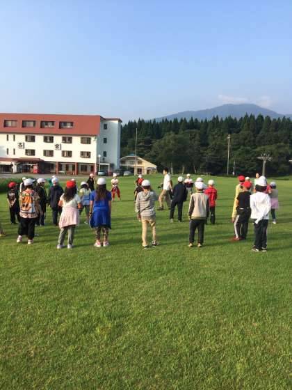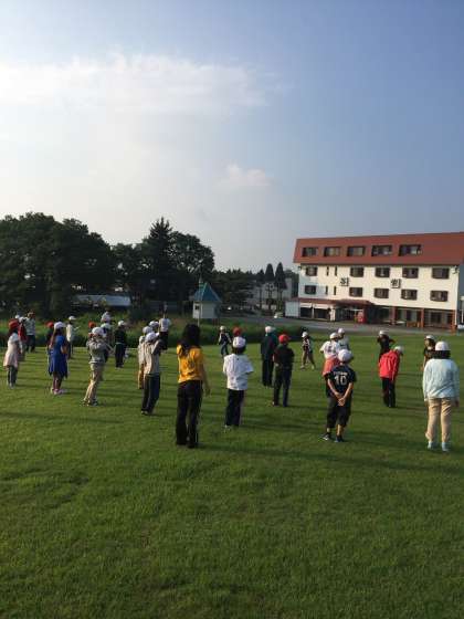 とても良い天気の下、体操をして今日の予定を確認しました。