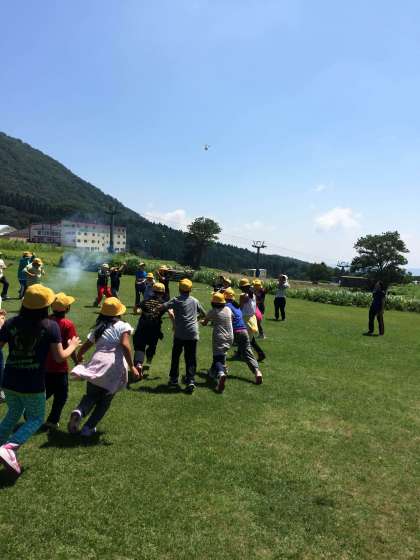 高原遊びが終わりかと思いきや、校長先生からプレゼントがありました。