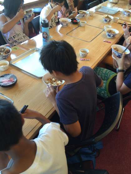 林間最後の日のお昼ごはんは、定番の牛丼です。