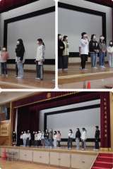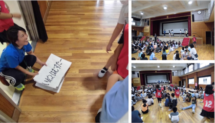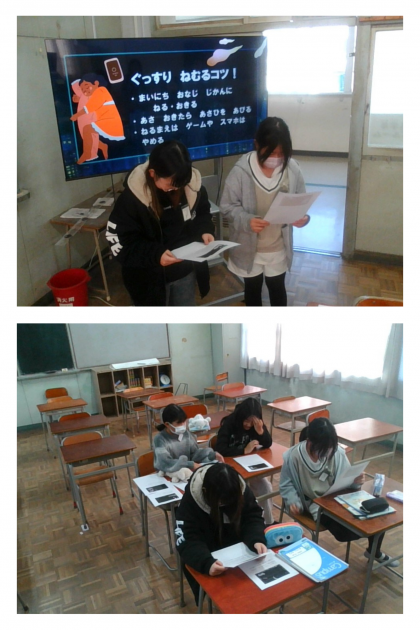 集会のたてわり班で、健康委員会が作成した食に関するクイズ(全6問)に取り組みました。