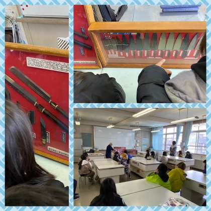 そこで、今日は、実際に堺市で包丁づくりを行っている職人さんを講師としてお招きし、出前授業を行いました。