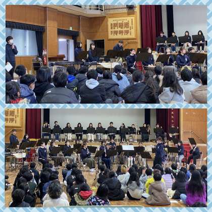 大阪教育大学吹奏楽部の方々をお招きし、音楽鑑賞会を行いました。