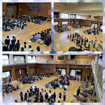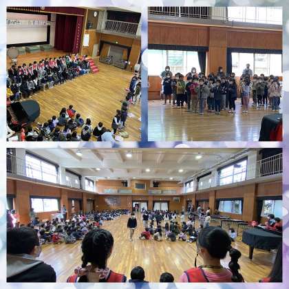 そして、6年生からはお返しとして素敵な合奏をや1年生には防災頭巾をプレゼントしてもらいました。