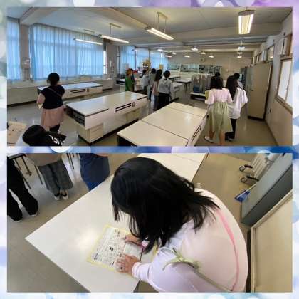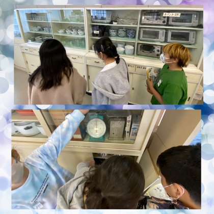 今日は家庭科室へ行き、どんな道具があるのか調べました。