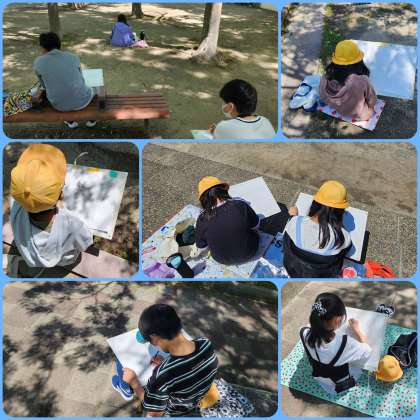 毛馬桜ノ宮公園に行きました。公園や周りの建物、自然など、気に入った景色を描きました。よく観察し、集中して取り組むことができました。