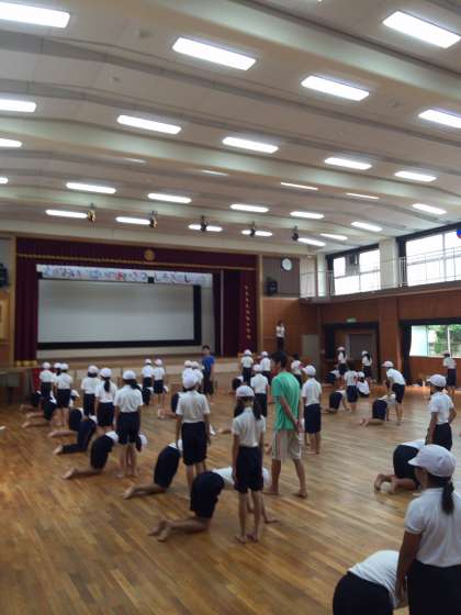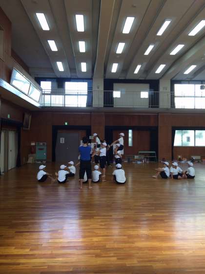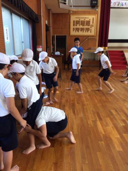 6年生の子どもたちが先に技を身につけ、それを5年生の子どもたちに教えるという形で練習をしています。