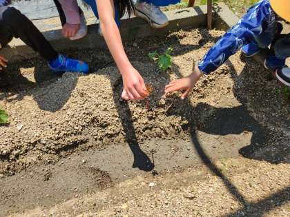 確認の終わった子達は、進んで畑の草抜きをしていました。