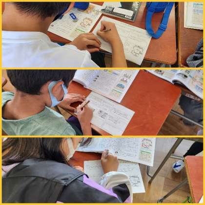 児童センターでの活動について学習した後、児童センターができるまでの市役所の働きや、運営費などについて調べたことをまとめました。