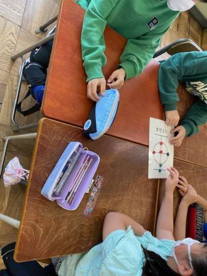 韓国・朝鮮の遊びをしました。その中でもユンノリが子どもたちは気に入ったようです。
