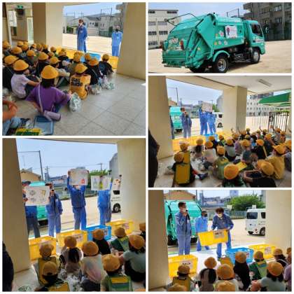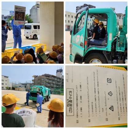 大阪市環境局のみなさんにお越しいただき、ごみやパッカー車についての出前授業を実施しました。