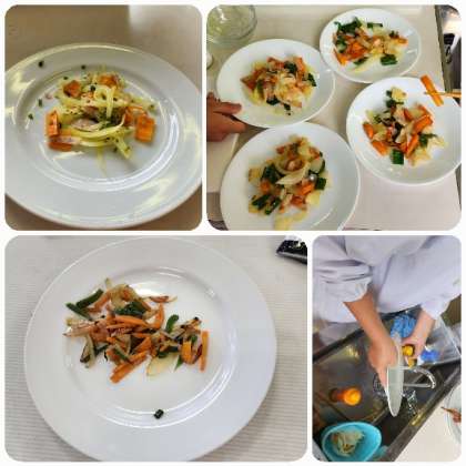 「いろどりいため」が完成しました。「にんじんが固かったかな?」「ちょうどいい大きさに切れてる」「嫌いだったピーマンの見方が変わった」など、自分で調理することでいろいろな気づきがあったようです。