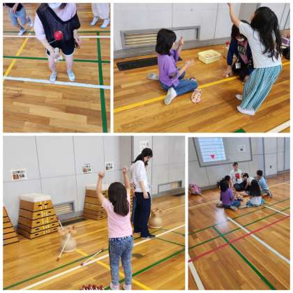 おにごっこや輪投げに似た遊びもあり、初めてする遊びでも、子どもたちは楽しそうに取り組んでいました。