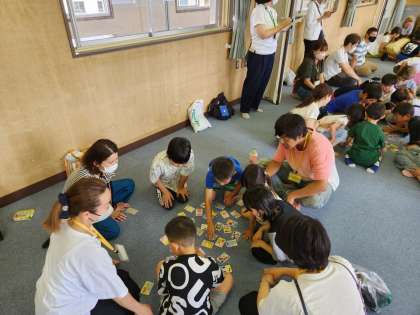 大人も子どもも入り交じって膝を突き合わせて楽しくかるたをしました。