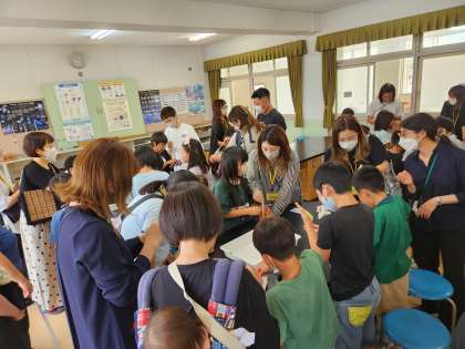 お家の人と一緒にスライム作り。柔らかいスライム、固めのスライム、カラフルなスライムがたくさんできました。