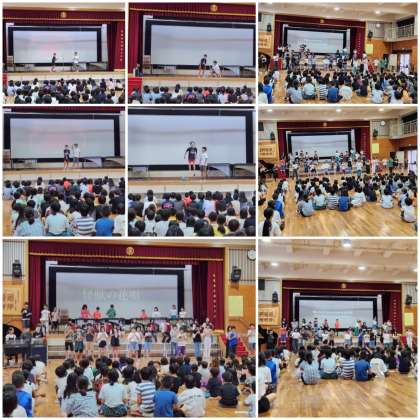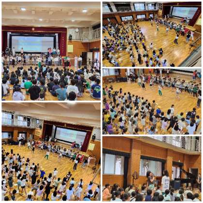 有志による漫才からはじまり、会場を盛り上げた後に、合唱・合奏が披露され大きな拍手が贈られました。最後に「ジャンボリーミッキー」を全校児童で楽しく踊りました。