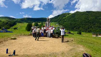 明日の山登りのポイントでもあるモニュメントの前で集合写真をとりました。