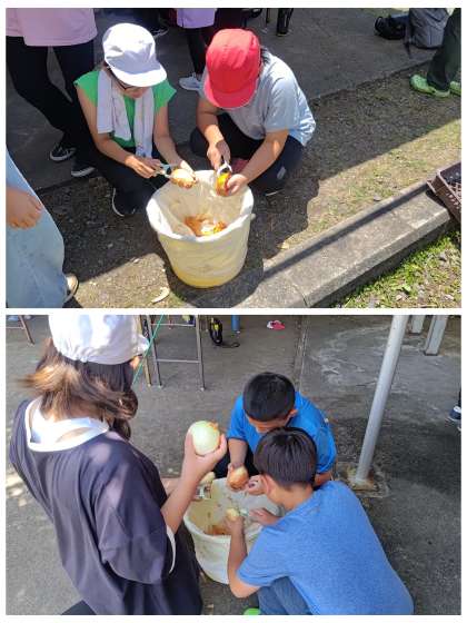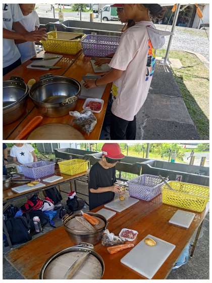 かまどの準備や野菜の皮むきなど、役割を決めて…いざカレー作りのスタートです!