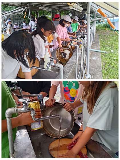 おいしく食べたあとは、使った道具の片付けです。初めと同じ状態になるまで、ピカピカに洗います。宿の方のチェックに合格すると完了です。