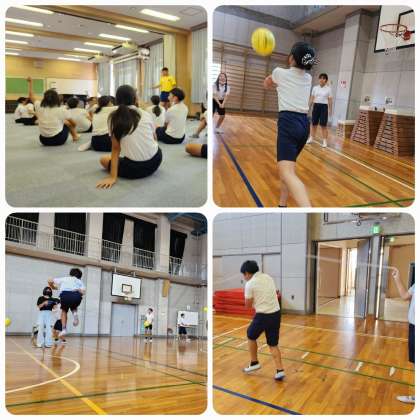 その後、涼しい部屋でシナプソロジーのプログラムを取り入れた準備体操をし、風通しのよい体育館でボール運動となわとびに取り組みました。