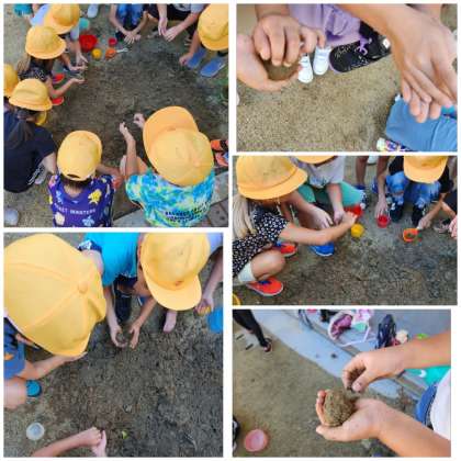 はじめは、手が汚れることを嫌がっている子もいましたが、一度触ってしまえばパァッと笑顔を見せて楽しそうに遊んでいました。