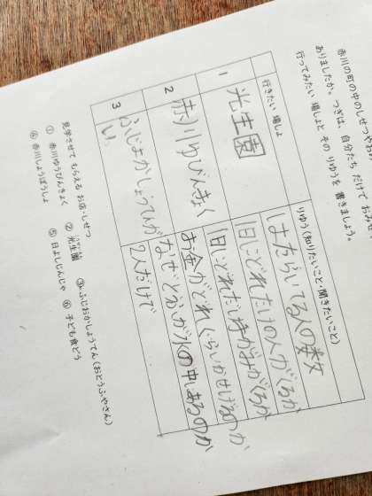 「どうしてここに行きたいの?」ときくと、「神社はいつからあるのか聞きたいから」「郵便局に行ったことないから」といった答えが返ってきました。中には、「消防士さんになるためにどうしたらいいか聞きたい」という声もありました。