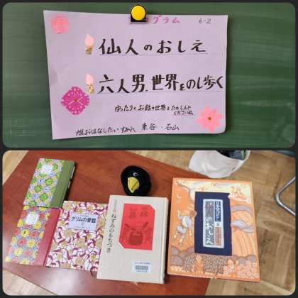 旭おはなしたいすみれの方に来ていただき、「六人男 世界をのし歩く」「仙人のおしえ」のお話を披露してくださいました。