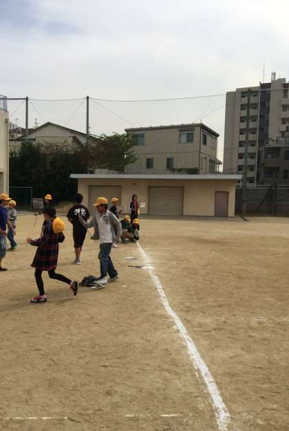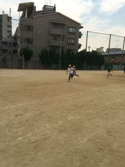運動会は終わりましたが、6年生の子どもたちが運動場を全力疾走しています。