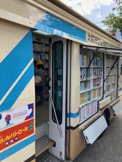 城北小学校にまちかど号がやってきました。まちかど号ではじめて本をかりて、教室で読みました。