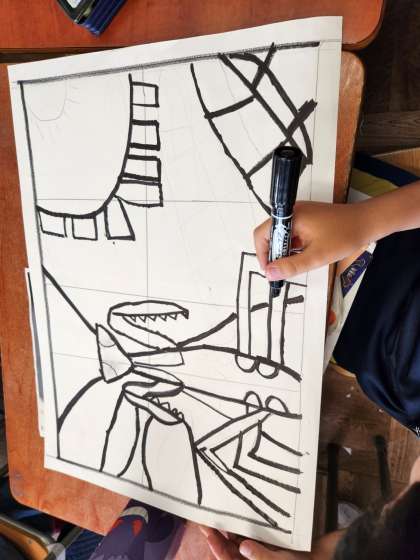選んだ虫の写真を良く見て画用紙に描き、今は切り絵に挑戦中です。