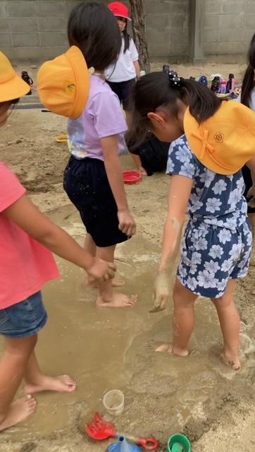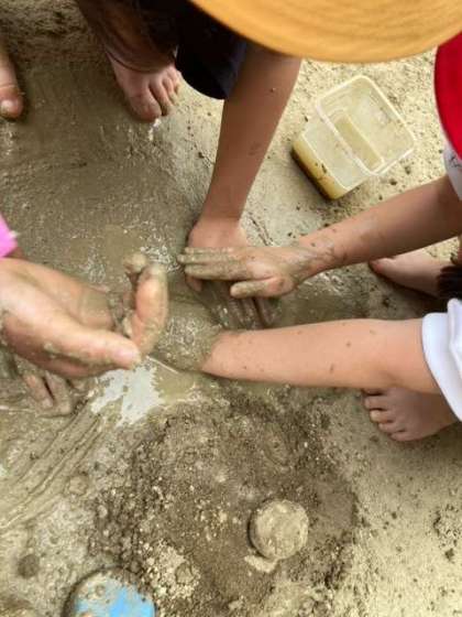 どろの感覚を楽しみ、そして想像力を養い、友達と仲良く協力しながら遊ぶことをテーマに取り組みました。