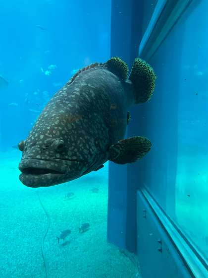 近くに来て、壁に貼り付く魚とにらめっこする子どもたちもいました。