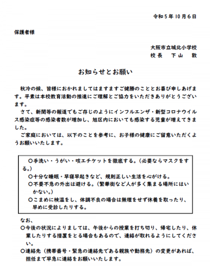 新聞などでもご存じの通り、インフルエンザや新型コロナウイルス感染症などの感染者数が増加し、旭区内においても感染する児童が増えてきています。
