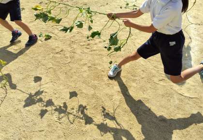 2年生では、いもほりをした時に切ったサツマイモのつるを使って、楽しく遊びました。
