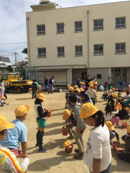 10月15日(木)に、旭区役所のみなさんと地域の緑化リーダーのみなさんが、「たねはなプロジェクト」の活動で来校しました。