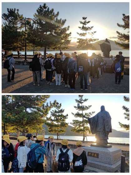 平清盛像や明日の昼食後の集合場所を確認して、ホテルに向かいます。