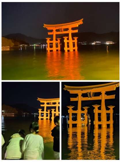 寝る前に少しだけ、厳島神社のライトアップを見に行きました。