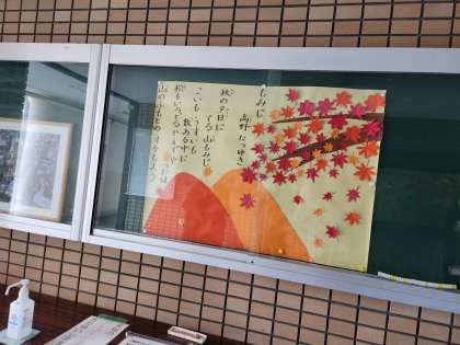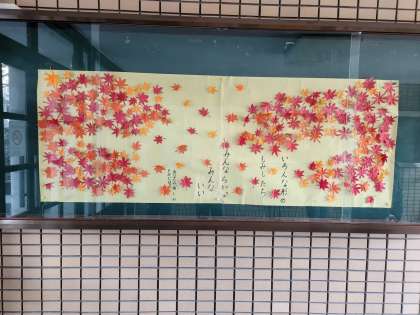 季節に合わせて、玄関には紅葉の掲示物を貼りました。