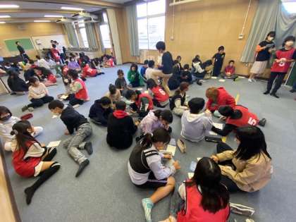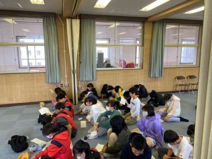 今週の金曜日に予定している秋の遠足について、たてわり班で確認しました。