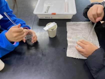 少しずつ食塩とミョウバンを足していき、溶け残るまでの数を記録しました。