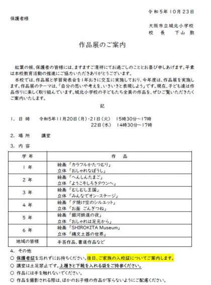また、ご来賓の方や地域の方は、玄関で受付名簿をご準備していますので、ご記入いただきますよう、よろしくお願いいたします。