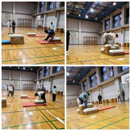 放課後、本校教職員による「跳び箱」の実技研修を行いました。