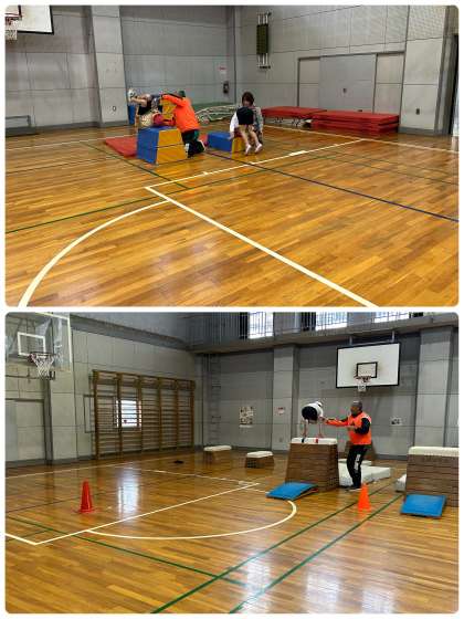 運動能力向上サポート事業として、とび箱のとび方を教えていただきました。