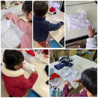 服をたたむ時は、端と端をきちんと合わせてたたむこと、食器を洗う時は、洗剤を付けすぎないように気をつけてくるくる回して洗うことを知り、一生懸命練習をしていました。