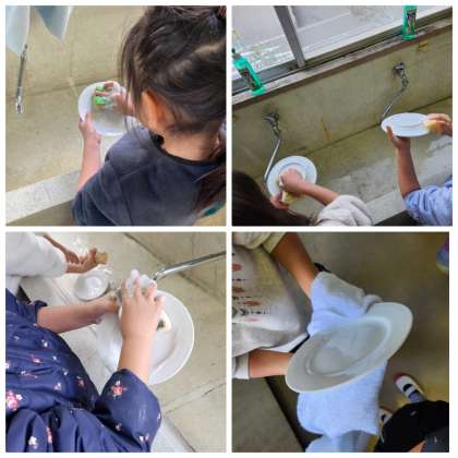 「はじめてお皿洗った!楽しかった」「思ってたより簡単だった。これならできそう」と感想を言っていました。